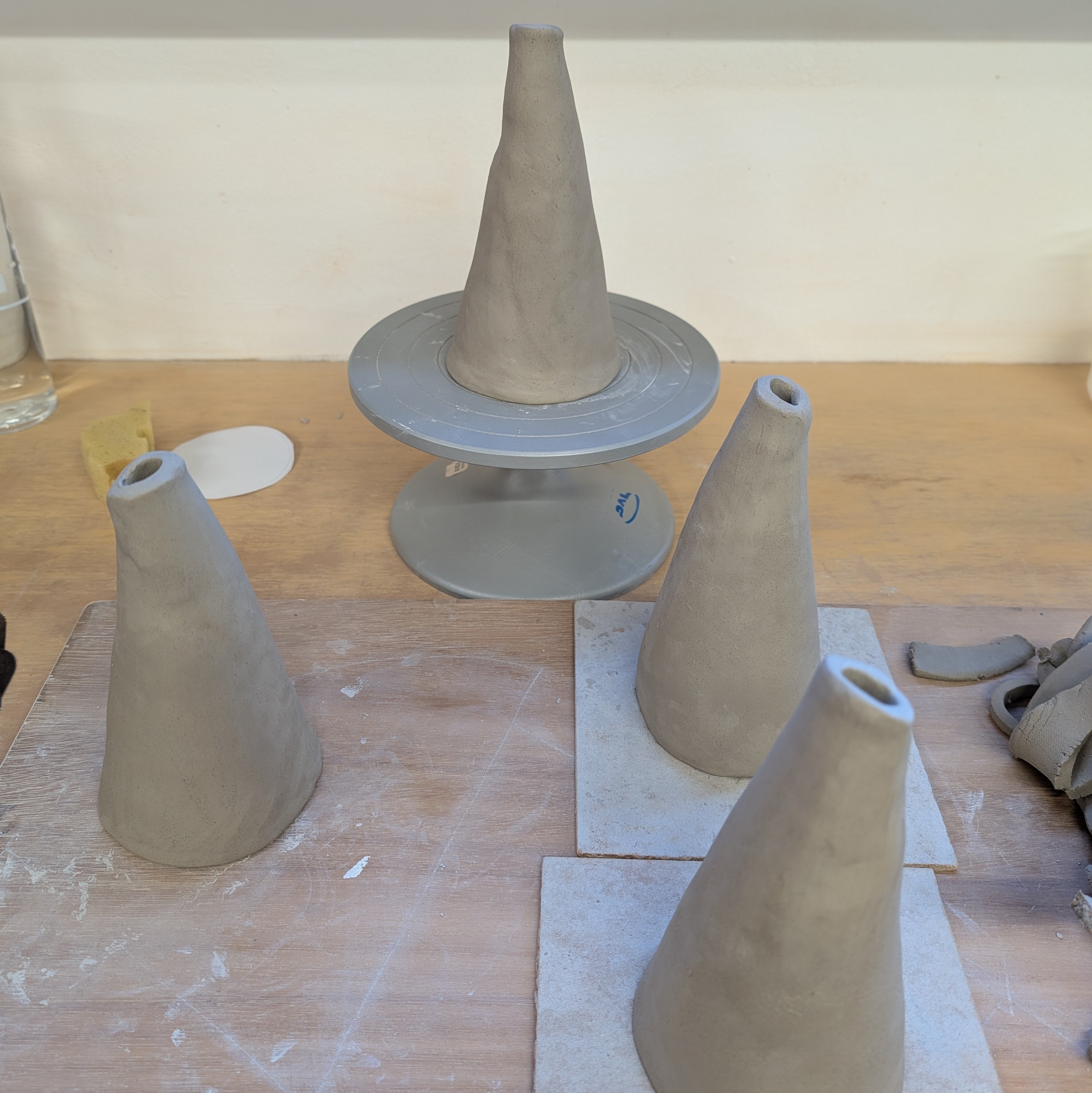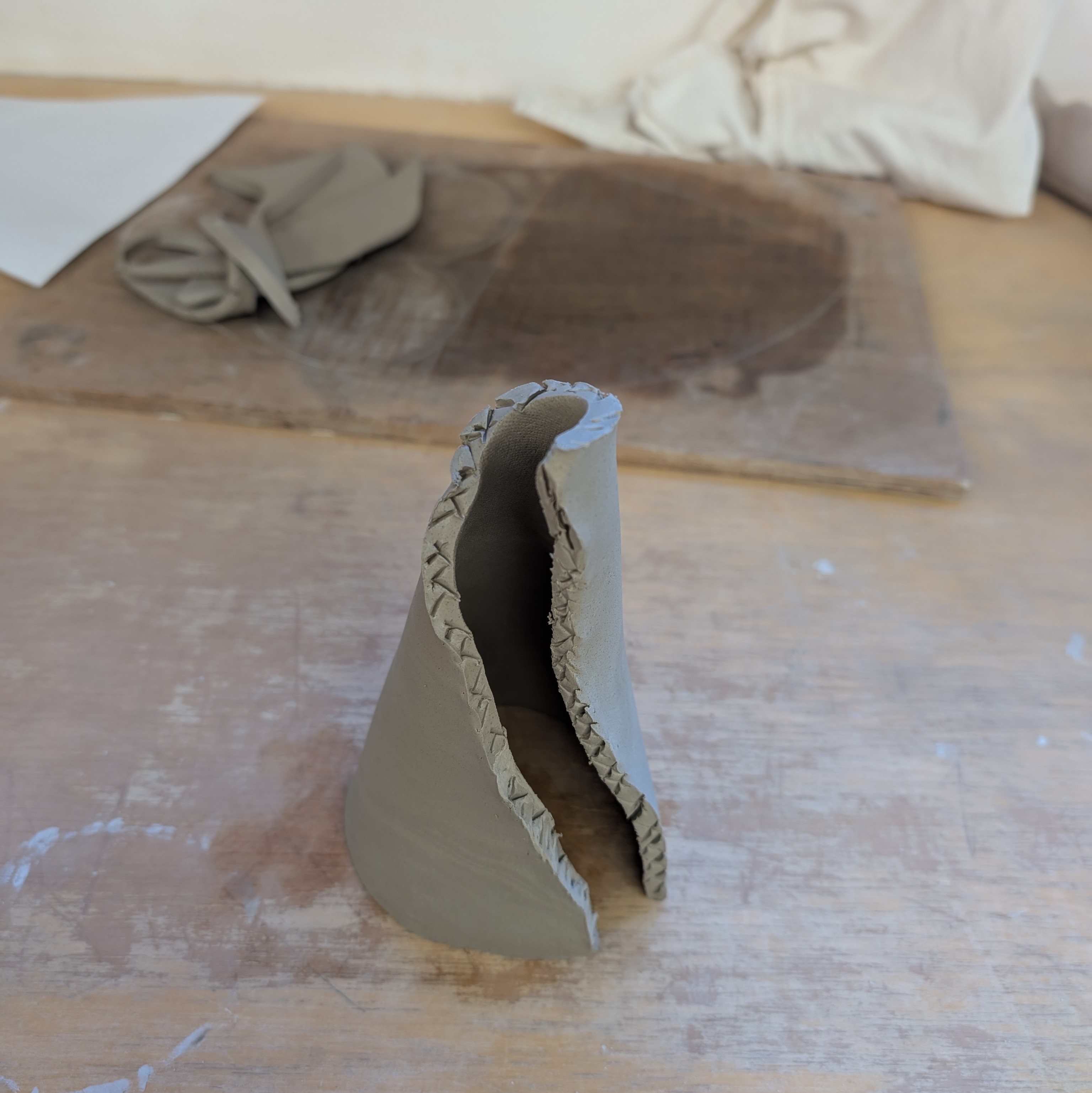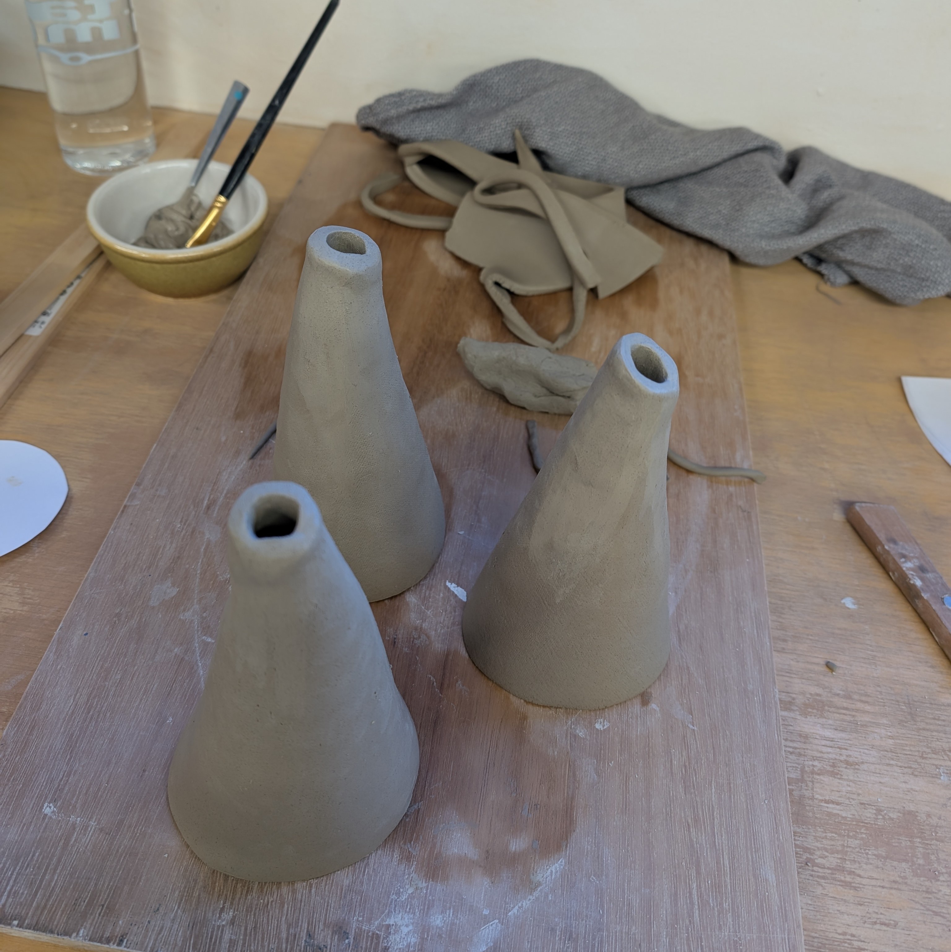 Here are some pictures of the building process! They were slab built, and I’d prepared some paper templates at home that I brought along to use – and they worked a treat.